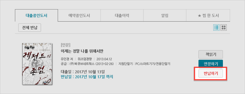 * 특별한 이유가 없다면 굳이 반납을 하지 않아도 자동 반납 됩니다.
